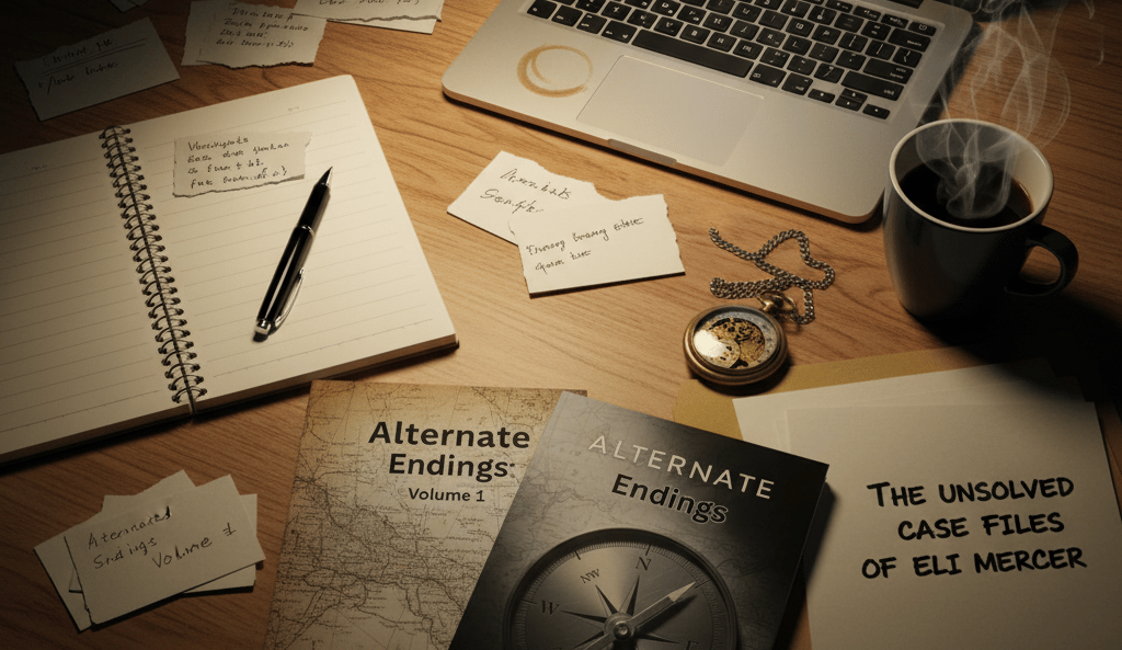 We offer the 'Alternate Endings' series and the 'Eli Mercer' series, each with individual story grids.
